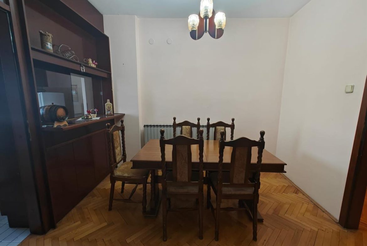 Станот се состои од дневна со трпезарија, посебна кујна, две тераси, од кои едната е затворена и направена во соба, спална соба, бања со тоалет и мала летна кујна. До станот стигнуваат два лифта, од кои едниот е товарен. Градско парно греење.